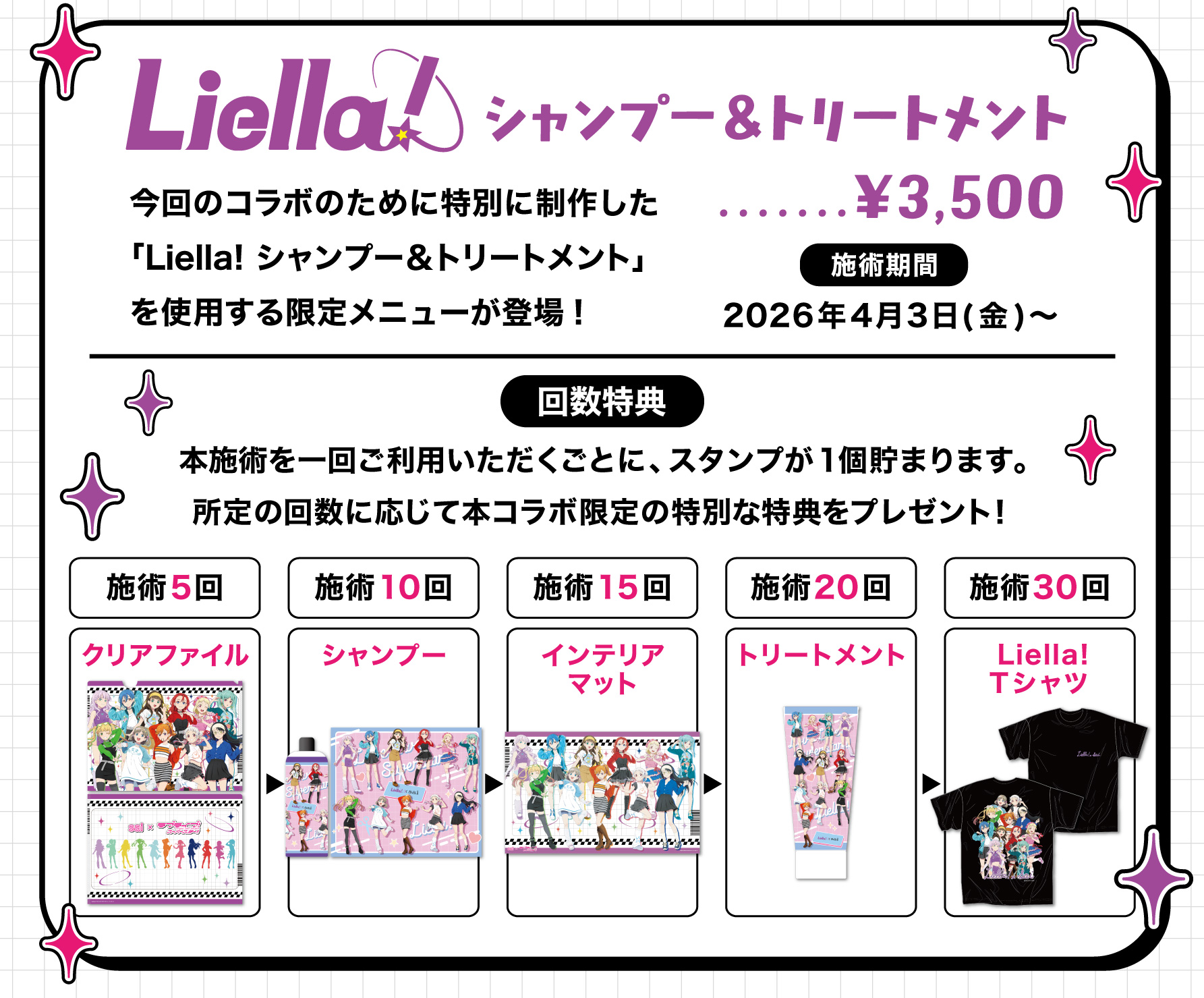今回のコラボを記念して発売されるLiella!シャンプー&トリートメントを美容室saiにて体験ができます。