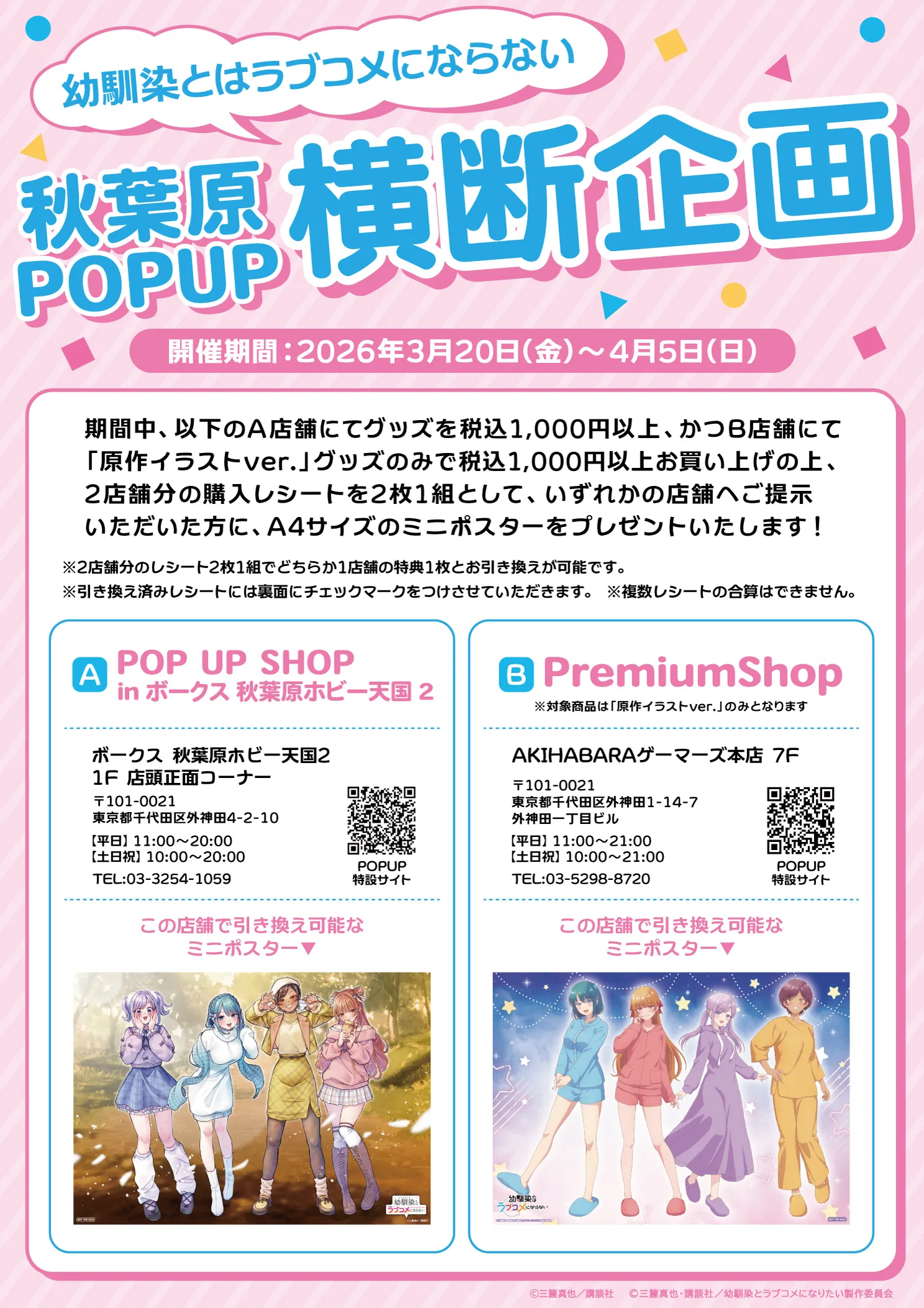 3月7日(土)より、ゲーマーズ秋葉原/ゲーマーズ仙台/ゲーマーズ名古屋/ゲーマーズなんば/ゲーマーズ博多の5都市にて『幼馴染とはラブコメにならない』の新商品を販売いたします♪